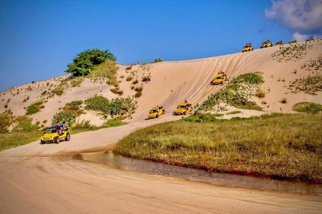 O passeio de buggy pelas dunas é uma das atividades mais procuradas por quem visita o Ceará. Além da emoção ao percorrer paisagens naturais impressionantes, o trajeto inclui paradas estratégicas para fotos, banho de lagoa e momentos de contemplação. É possível escolher passeios mais tranquilos ou com mais adrenalina, adaptando a experiência ao estilo do casal.